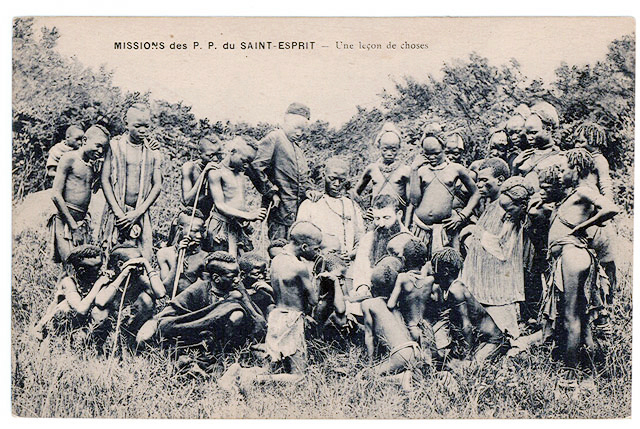 Quand le fracas des armes s'est tu et que le nouvel ordre règne, le missionnaire s'intéresse aux âmes, on le sait. C'est ce for intérieur qu'il a charge d'enlever. Je souhaite rappeler que, contrairement à ce qu'affirme la parole évangélique qui énonce que le royaume de Dieu n'est pas de ce monde, il existe une relation essentielle entre la représentation qu'une société se fait du "monde d'en haut" et son expérience du "monde d'en bas" ; que ce rapport d'expression peut se résumer dans sa pratique de la parenté ; que l'entreprise colonisatrice engage (notamment) une conversion au système de parenté du colonisateur et que c'est cela, au fond, "porter la bonne parole".