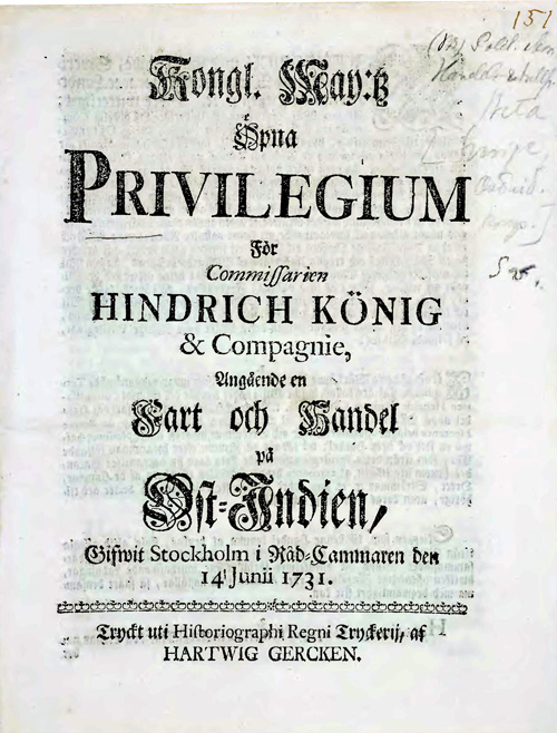 "Il ne faut pas être surpris si tant de Nations ont voulu participer au Commerce des Indes Orientales, puisqu'il n'en est point dans l'Univers de plus riche ni de plus considérable que celui qui s'y fait. C'est de ces Pays féconds, que le Soleil regarde de plus près que les nôtres, qu'on rapporte ce qu'il y a de plus précieux parmi les hommes, et ce qui contribuë le plus soit à la douceur de la vie, soit à l'éclat et à la magnificence. C'est de là qu'on tire les Pierreries ; et que viennent ces marchandises si recherchées, la Soye, la Canelle, le Poivre, le Gérofle, la Muscade, les Toiles de Coton, la Porcelaine, les plus beaux Bois, soit pour les parfums ou les teintures, soit pour la marqueterie et les ouvrages de rapport ; l'Yvoire, l'Indigo, l'Encens ; quelques autres plus récemment en usage, comme le Thé, le Caffé ; en un mot une infnité de choses non seulement nécessaires, mais encore que l'habitude rend telles, dès qu'on y est une fois accoûtumé." (du Fresne de Francheville, Histoire générale et particuliere des Finances, 1738, p. 13, dans : l'"Histoire de la Compagnie des Indes avec les titres de ses Concessions et Priviléges")